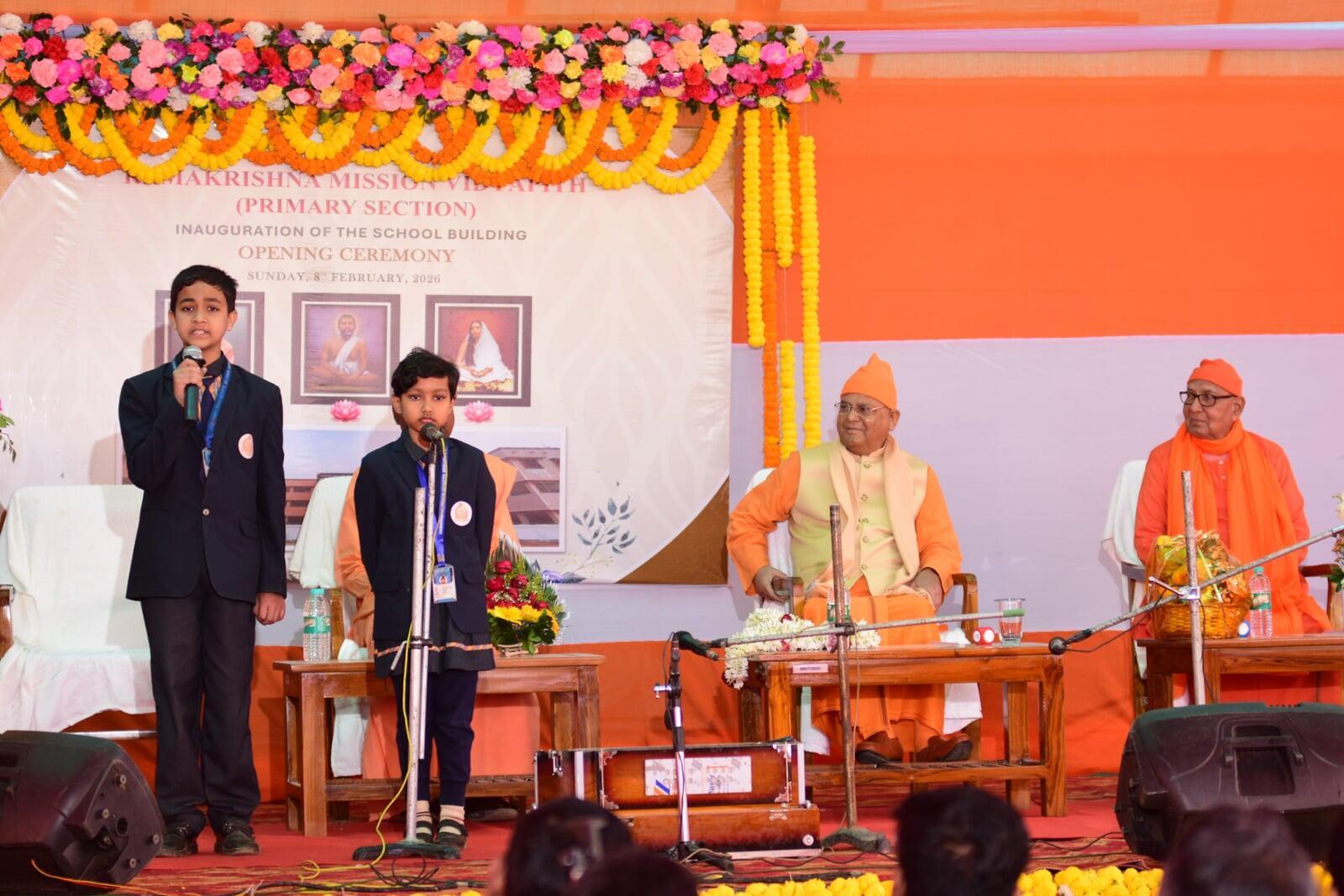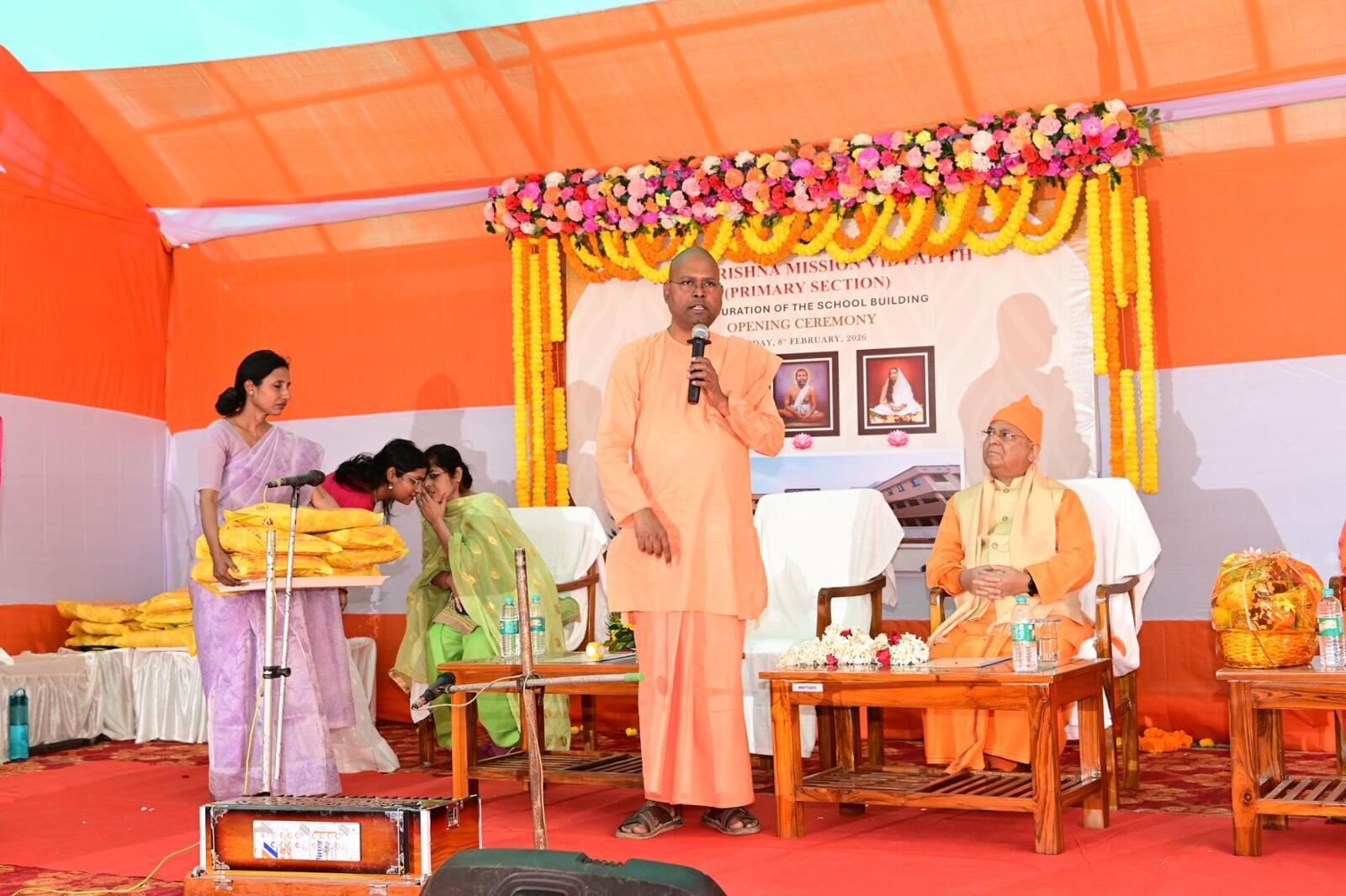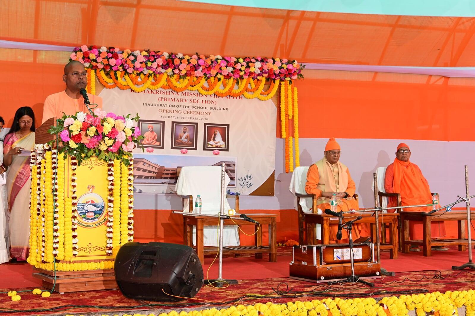 The inauguration of the Primary School Building of Ramakrishna Mission Vidyapith, Jhargram was held on 8th February 2026 with great devotion and solemnity in the august presence of Swami Suvirananda ji Maharaj, General Secretary of Ramakrishna Math and Ramakrishna Mission, Belur Math, and Swami Sadanandaj i Maharaj, Secretary of Sri Ramakrishna Ashrama Nimpith.
